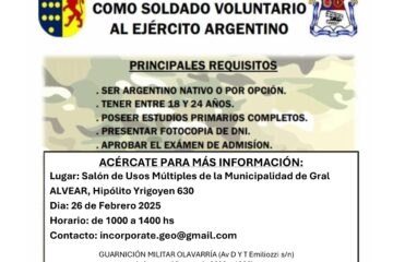 24 de febrero de 2026CONVOCATORIA: Llamado a Concurso de Antecedentes para cubrir cargo de Médico de Familia o General. Objeto: cubrir Guardias Pasivas y/o Activas requeridas en el Hospital Municipal «Bernardino Rivadavia» de Gral. Alvear y atención en consultorios de...